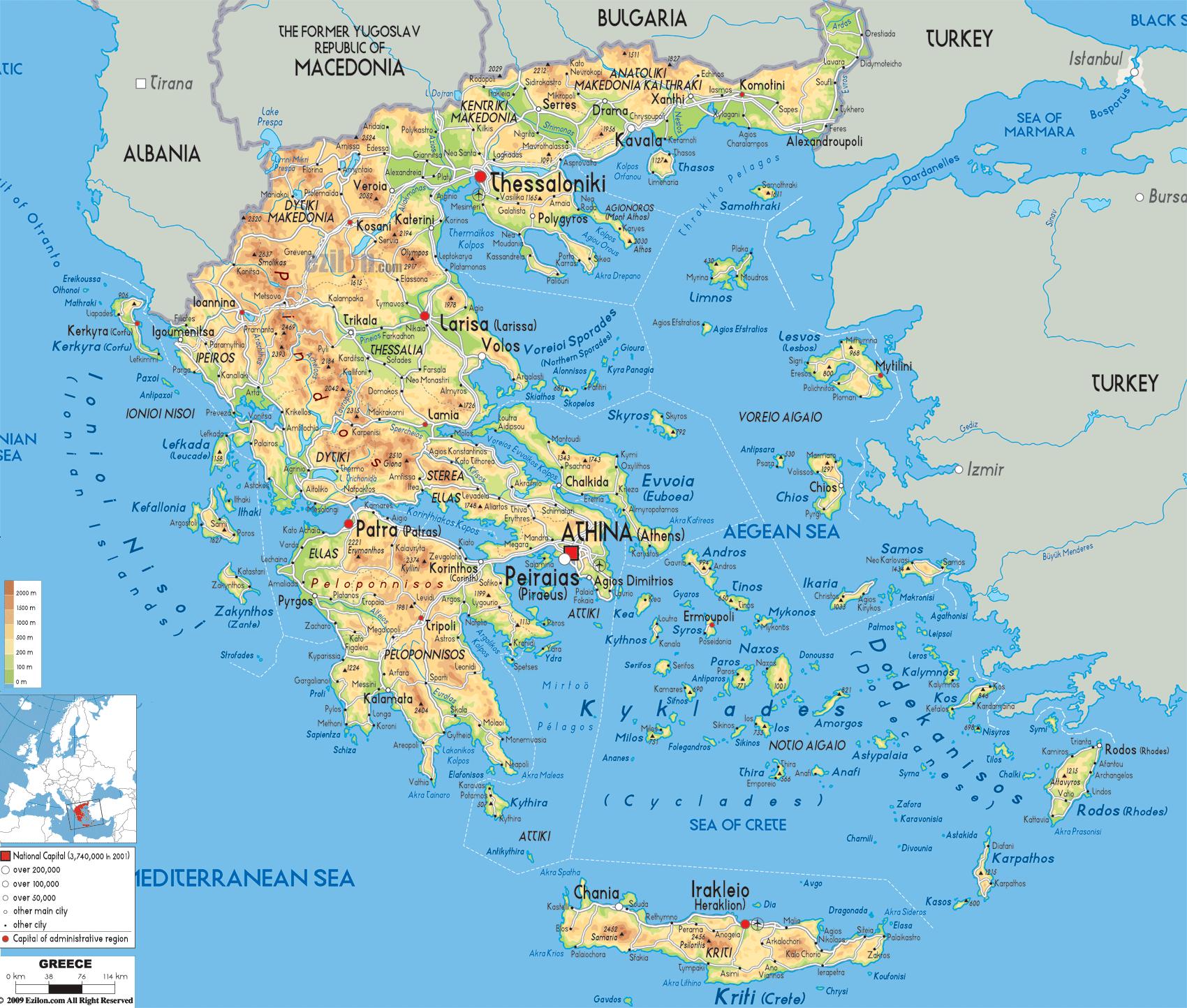 Geographical map of Greece. Greece geography map (Southern Europe - Europe) to print. Greece geography map (Southern Europe - Europe) to download.