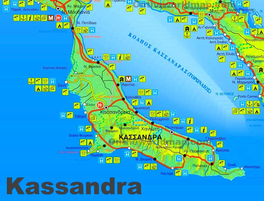 Kassandra Greece map